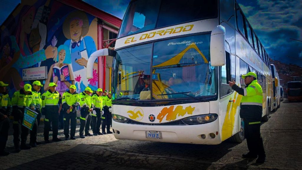 * Control de la policía al transporte interdepartamental por Carnaval en La Paz. Foto: Comando Departamental de la Policía en La Paz.
