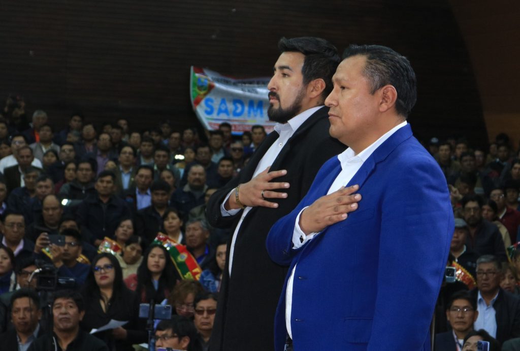 Cristian Tancara y Joel Mendoza fueron posesionados este martes como los nuevos secretarios municipales de Educación y Movilidad Urbana de la ciudad de El Alto, respectivamente. La alcaldesa Eva Copa posesionó a las dos flamantes autoridades ediles.