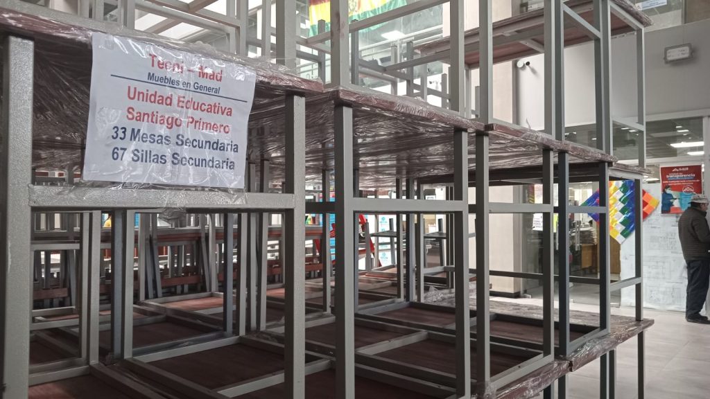 Con una inversión de Bs 2.344.220, el municipio alteño entregará mobiliario a 56 unidades educativas que incluye sillas, mesas de escritorio, libreros