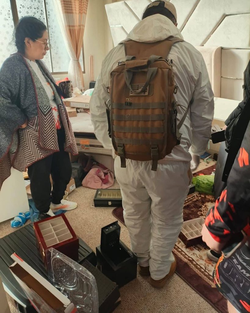 Entre los bienes robados se encuentra una caja fuerte que contenía aproximadamente 500.000 bolivianos y 17.000 dólares, además de relojes de colección, computadoras portátiles, teléfonos celulares, una consola de videojuegos y prendas de cholita de alto valor.