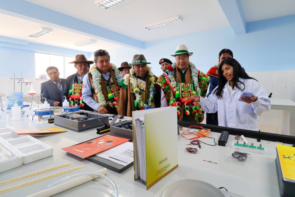 El presidente Luis Arce Catacora entregó este martes la Unidad Educativa Nacional de Calazaya en el municipio de San Pedro de Totora, departamento de Oruro. Esta entrega de obras en el departamento forma parte de la conmemoración de los 244 años de la gesta libertaria de Oruro.