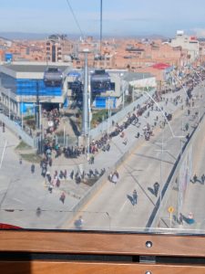 Largas filas en la estación de la Línea Azul de Mi Teleférico en la zona de Río Seco. La empresa...