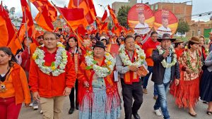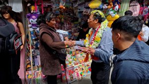 El candidato a la alcaldía por la agrupación Venceremos, Oscar Huanca, visitó este domingo la feria 16 de Julio para...