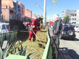 A través de la Dirección de Áreas Verdes y Forestación, la Alcaldía de El Alto comenzó la limpieza y embellecimiento...