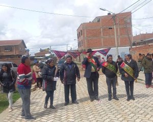 El subalcalde del Distrito 8, Néstor Huancollo, entregó un enlosetado y una jardinera central en la Urbanización 5 de Febrero...