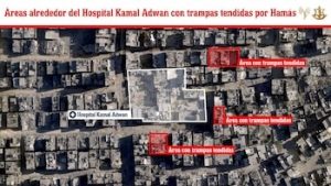 Las Fuerzas de Defensa de Israel divulgaron este plano del operativo alrededor del hospital Kamal Adwan. El Ejército de Israel anunció este...