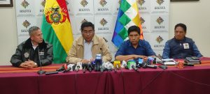 El ministro de Desarrollo Productivo y Economía Plural, Néstor Huanca, junto a los viceministros Luis Siles, Jorge Silva y Grover...