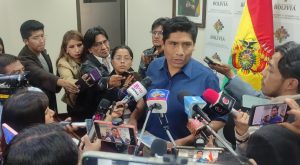 El ministro de Desarrollo Productivo y Economía Plural, Néstor Huanca Chura, durante la conferencia de prensa. En respuesta a la...