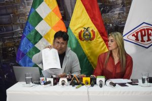 La gerente de Productos Derivados e Industrializados de YPFB, Gabriela Delgadillo. Yacimientos Petrolíferos Fiscales Bolivianos desmintió las declaraciones de la...