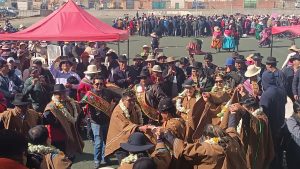 Por iniciativa de la alcaldesa Eva Copa, ocho mujeres de la organización de artesanas Jiwasay Bolivia exponen sus prendas hechas...
