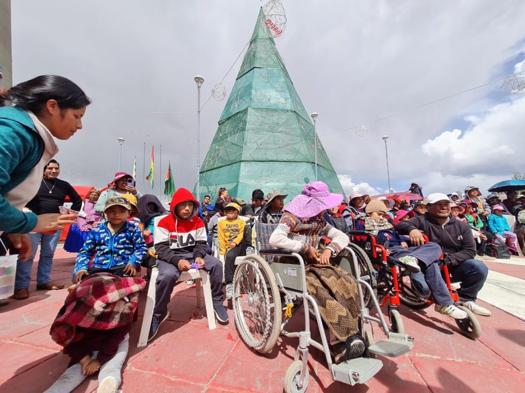 A horas de celebrarse la Noche Buena, la Secretaría Municipal de Desarrollo Humano y Social Integral de la Alcaldía trajo una “Navidad inclusa”, para personas con discapacidad en el atrio del Jach’a Uta, donde se organizó una chocolatada para niños con discapacidad quienes disfrutaron de un show con payasos y personajes disfrazados de la serie animada Paw Patrol.