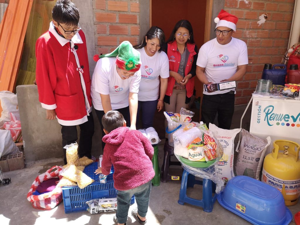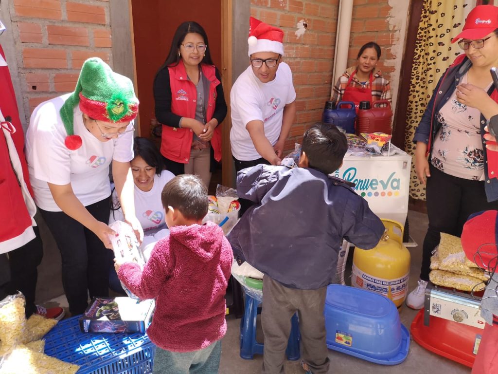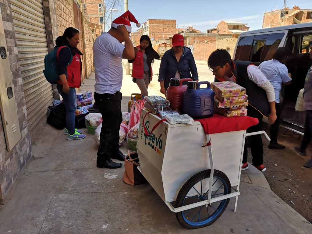 Aymé Chávez Ramírez, una joven madre de tres niños, no podía creer cuando el Brazo Social de la Alcaldía de El Alto le trajo de regalo víveres, una garrafa, una cocina, un canastón y hasta un carrito para impulsar su emprendimiento de venta de jugos. Mientras que sus tres niños recibieron juguetes.