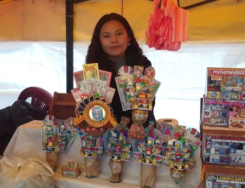 Por su lado, la artesana Hilda Marca viuda de Huanca, ratificó que a esa feria llegan incluso desde Caranavi, Alto Beni y Riberalta para comprar por docenas casitas, billetitos, autitos, herramientas y fajos de bolivianos y dólares para hacerlas bendecir a las 12.00 del 24 de enero con la ilusión de que se haga realidad.