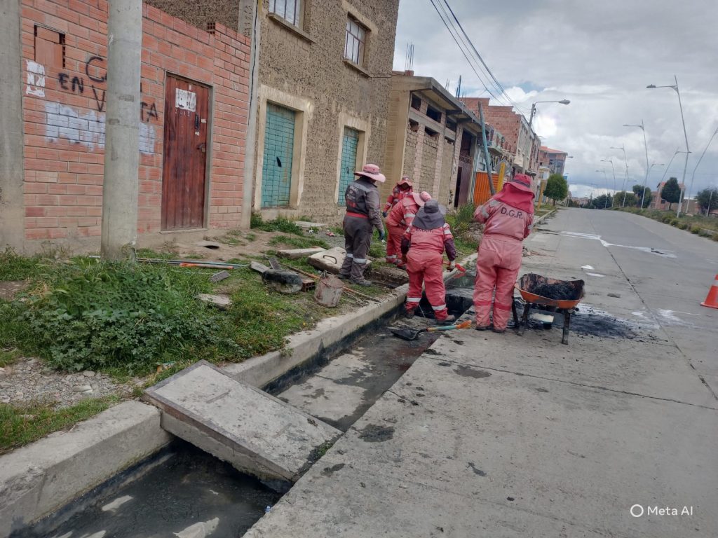 El municipio de El Alto, a través de la Dirección de Gestión de Riesgos (DGR), realiza el despliegue de cuadrillas de obreros para realizar las limpiezas de bocas de tormenta y sumideros de las diferentes avenidas de la urbe alteña, además moviliza maquinaria pesada para la limpieza de ríos, con el fin de evitar desbordes e inundaciones.