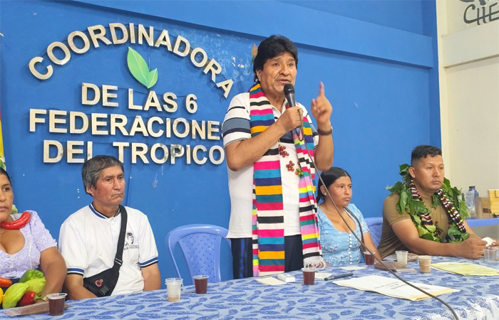 El expresidente Evo Morales afirmó este domingo que la restricción de su salida de Lauca Ñ a consecuencia de un mandamiento de aprehensión, en lugar de perjudicarlo, lo beneficia, ya que recibe constantes visitas de delegaciones nacionales y extranjeras que expresan su apoyo en su candidatura presidencial.
