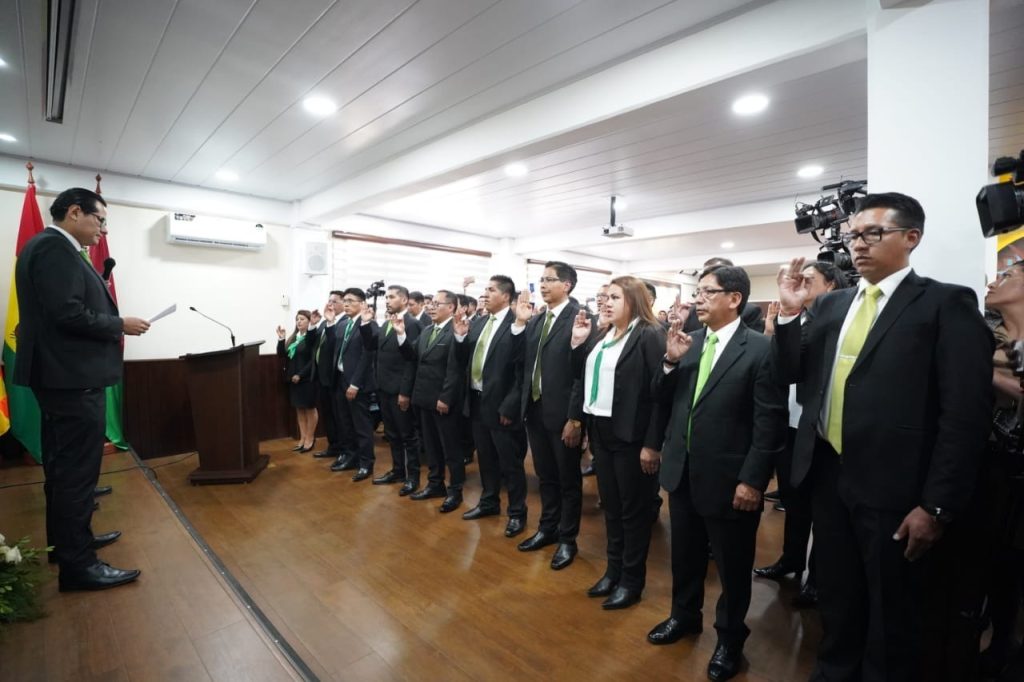 Mariaca informó que la incorporación de los nuevos servidores públicos se realizó en el marco de la Invitación Pública Externa N°001/2024 emitida por la Fiscalía General del Estado que, luego de un riguroso proceso de selección, los 25 postulantes más competentes y con impecables antecedentes de integridad, transparencia, profesionalismo y eficiencia fueron seleccionados para ingresar al Ministerio Público como Fiscales de Materia.