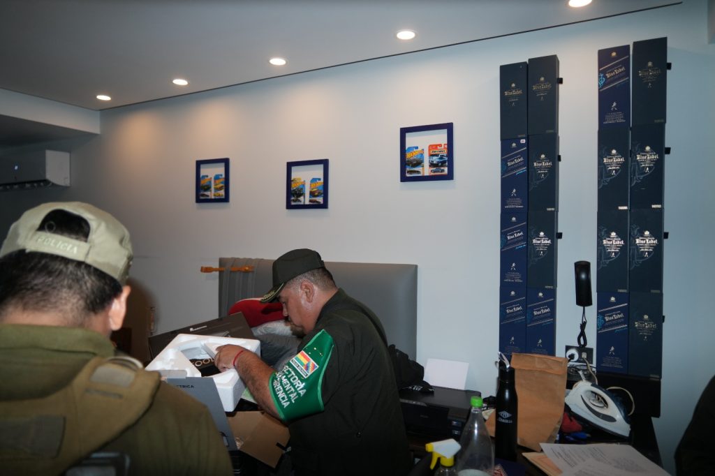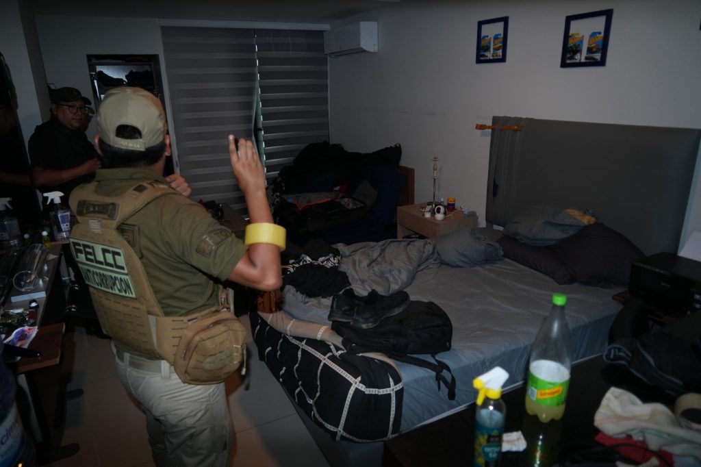 En un primer operativo, la autoridad detalló que no se encontró al sindicado, pero se logró la incautación de dinero y otros elementos: “se incautaron 16.500 dólares americanos y 40.000 bolivianos. Además, se incautó una camioneta, un casco de la empresa petrolera YPFB, porque el detenido se hacía pasar como funcionario de la estatal del petróleo”.