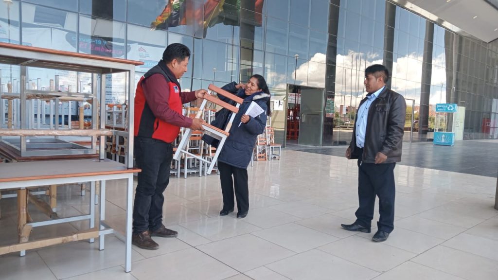 “Estamos haciendo la entrega del mobiliario codificado y las actas de transferencia a la Directora (del establecimiento) para que los estudiantes del nivel primario y secundario puedan hacer el uso de este material”, sostuvo Añaguaya.