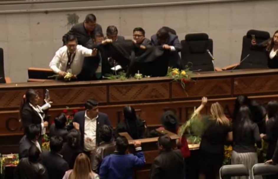“A los asambleístas presentes, pido disculpas por esta actitud bochornosa de la Asamblea, por lo que, a través de un comunicado oficial, vamos a hacer conocer sobre esta gestión 2024 -2025”, dijo el vicepresidente, quien ante las agresiones evistas tuvo que abandonar la Asamblea.