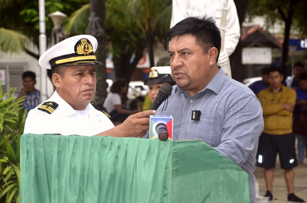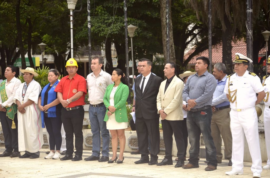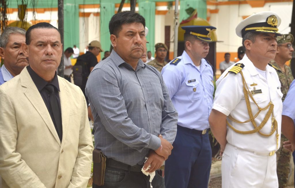 Acompañado de autoridades políticas de los gobiernos subnacionales del departamento amazónico, jefes militares y policiales y representantes de sectores sociales, el Ministro participó esta mañana temprano en la ceremonia de Iza del Pabellón Nacional y Símbolos Patrios.