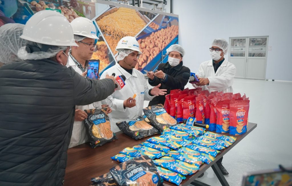 El viceministro Siles destacó que “la planta es un ejemplo de la política de industrialización del Gobierno del presidente, Luis Arce, para sustituir importaciones y beneficiar a las familias productoras de papa del altiplano norte y sur”.