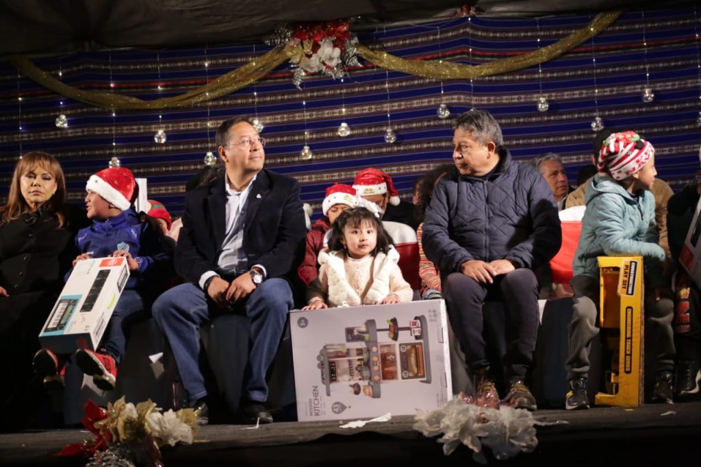 El jefe de Estado, estuvo acompañado de su esposa, Lourdes Brígida Durán de Arce, además de autoridades de Gobierno, quien expresó sus mejores deseos a los niños y a las familias bolivianas, a pocas semanas de celebrarse la Nochebuena.