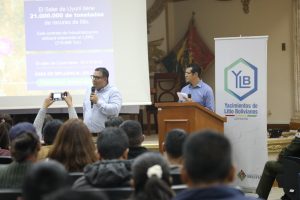 El viceministro de Energías Alternativas, Álvaro Arnéz, y el representante de Yacimientos de Litio Bolivianos (YLB), Alfonso Pérez, socializaron en...