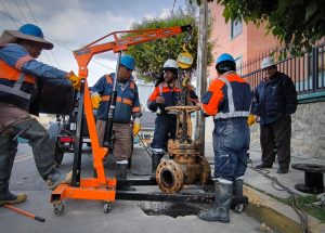 La Empresa Pública Social de Agua y Saneamiento (EPSAS S.A.) realiza el cambio de una válvula en la calle 18,...