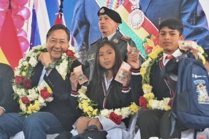 El presidente Luis Arce inició este lunes el pago del Bono Juancito Pinto de esta gestión, en la ciudad de...